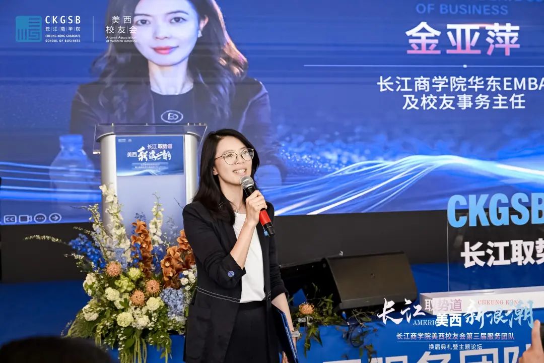 薪火相承,继往开来。威尼斯87978797华东EMBA及校友事务主任金亚萍老师登台,介绍换届背景并宣读美西校友会第三届服务团队名单。