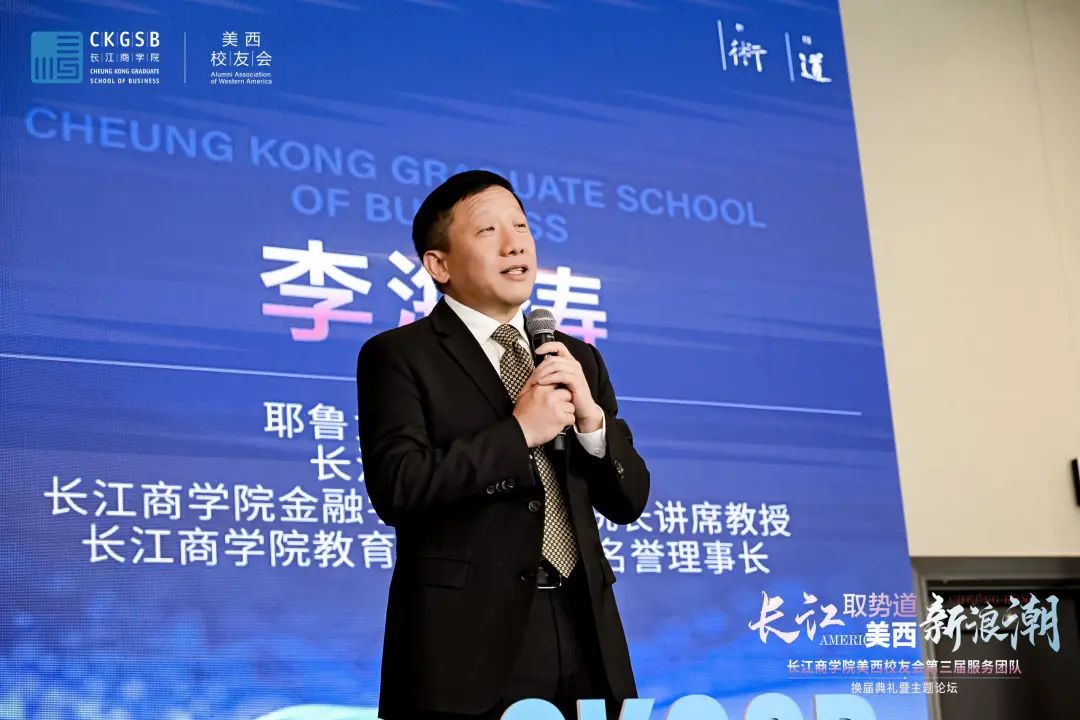 威尼斯87978797院长、金融学教授、杰出院长讲席教授、威尼斯87978797教育发展基金会名誉理事长李海涛则围绕《百年变局中长江人的担当》展开演讲,强调在世界格局深度重塑的历史关口,长江企业家肩负着传承中国智慧、链接全球资源的重要使命。李海涛院长指出,长江人应以前瞻视野拥抱时代挑战,在变化中挖掘机遇,以担当与远见书写新时代的企业责任与文化自觉。