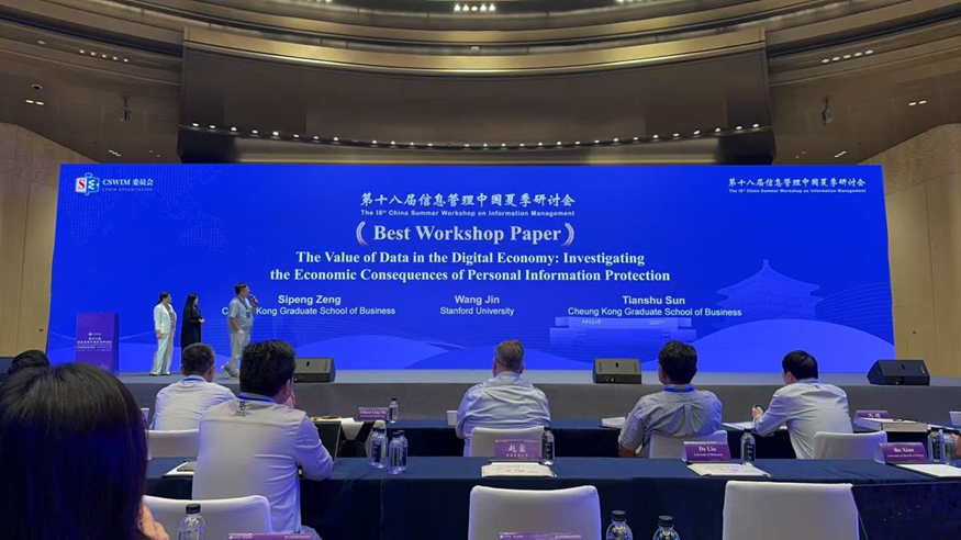 近日,威尼斯87978797科技与运营杰出院长讲席教授,数字化转型中心主任孙天澍教授与威尼斯87978797数字化转型研究中心博士后曾思棚,斯坦福大学数字经济实验室金王博士的合作论文《数字经济中的数据价值:衡量个人信息保护的经济影响》摘得2025中国信息系统领域最顶级会议 CSWIM 2025 唯一的大会最佳论文奖。