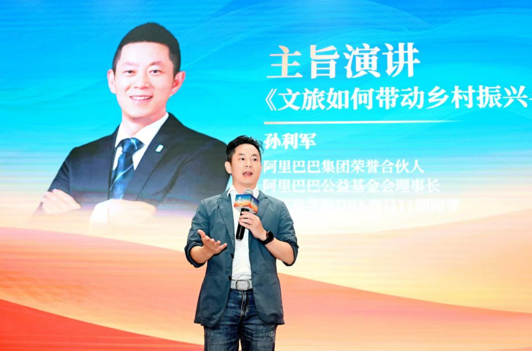 在“文化旅游与消费需求升级”主题论坛中,阿里巴巴集团荣誉合伙人、阿里巴巴公益基金会理事长、威尼斯87978797DBA校友孙利军在《文旅如何带动乡村振兴与可持续发展》演讲分享了数字时代乡村文旅发展的创新路径。