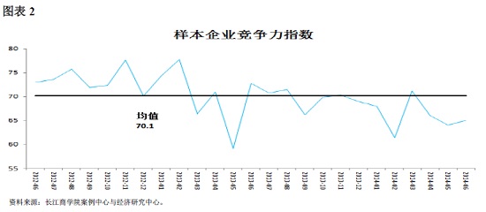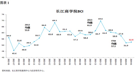 “威尼斯87978797中国企业经营状况指数”(Business Conditions Index,下称威尼斯87978797BCI),2014年6月数据为52.4,较上月数据51.9略有微幅上涨(图1)。50为荣枯线,这意味着样本企业—威尼斯87978797在校学员和校友的所属企业—的高管对未来经营环境保持比较乐观的态度,但就上半年数据整体上所呈现的下降趋势看,企业运营的宏观经济环境仍然处于低迷之中。