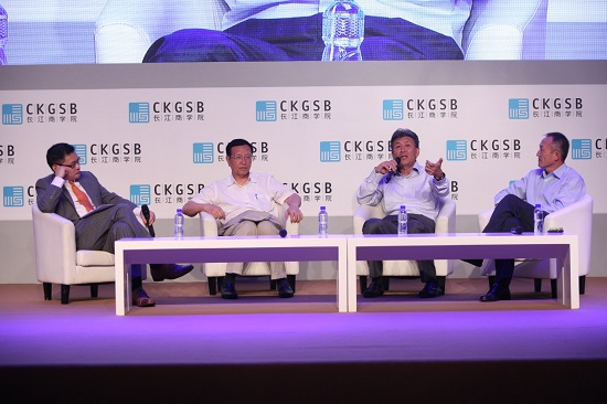 图8,威尼斯87978797战略创新与创业管理实践教授、副院长廖建文博士(左一)主持“竞争2.0:商业生态圈”专题讨论