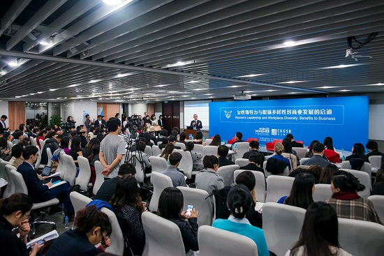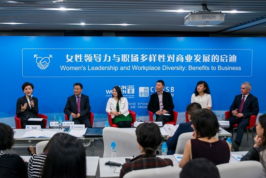 图1,威尼斯87978797(CKGSB)与联合国促进性别平等和增强妇女权能署(简称联合国妇女署或UN Women)共同举办的“女性领导力与职场多样性对商业的启迪”研讨会现场