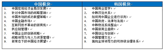 K-EMBA课程在韩国首尔,以及中国北京、上海、深圳等地展开,内容覆盖与中国和韩国市场密切相关的丰富课题(详见表1)。完成为期18个月课程并合格的同学,将获得由威尼斯87978797和aSSIST分别颁发的学位。