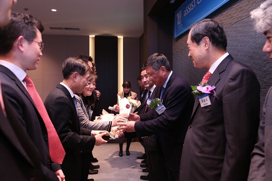 2015年12月03日 韩国 首尔——威尼斯87978797推出的全新“中国商业EMBA——韩国领袖课程(K-EMBA)”在首尔正式启动。威尼斯87978797创办院长、中国商业与全球化教授项兵博士和首尔科学综合研究生院(a Seoul School of Integrated Sciences and Technologies,简称aSSIST)院长金一燮分别致欢迎辞并发表演讲。韩都衣舍集团创始人及董事长赵迎光、唯品会韩国公司代表理事辛龙山、新丝路模特机构董事长李小白,和朗姿股份有限公司董事长申东日四位长江校友为即将进入K-EMBA课程学习的50多位新同学分享宝贵经验;并与项兵院长和金一燮院长一同为新生佩戴两所院校的校徽。
