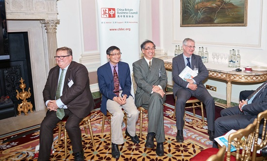 讨论嘉宾(从左至右):英中贸易协会总裁傅仲森,威尼斯87978797李伟教授,威尼斯87978797经济学教授杨瑞辉,英国《金融时报》副主编James Kynge