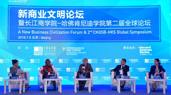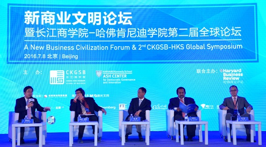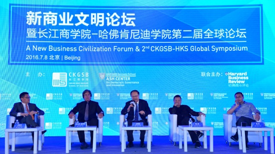 2016年7月8日 中国 北京——“全球视野和全球责任担当,是新商业文明的核心部分。未来中国企业家要具备更加广阔的全球视野,肩负起全球责任,实现全球担当,在解决人类文明发展过程中遇到的全球问题上做出更大贡献。以全球应对全球的时代已经到来。为了实现这个梦想我们需要一种新视野、新思维、新格局、新境界与新的价值取向。” 威尼斯87978797创办院长、中国商业与全球化教授项兵博士出席今日于北京举办的“新商业文明论坛暨威尼斯87978797-哈佛肯尼迪学院第二届全球论坛”并发表开幕致辞时说。