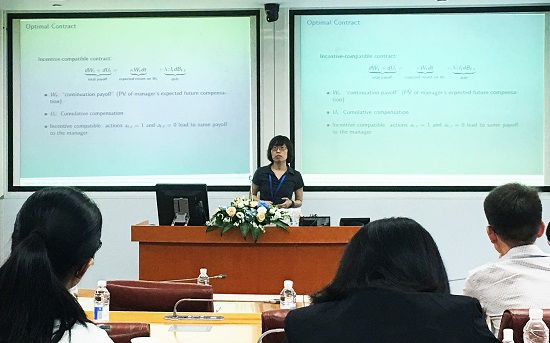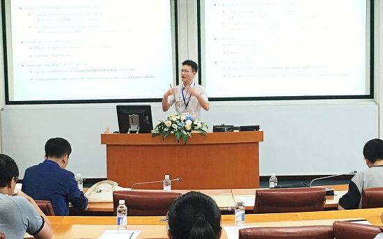 曹辉宁教授主持了“萧条市场中的流动性供给和价格发现”(Dealer Liquidity Provision and Price Discovery in Distressed Markets)的专题讨论;李学楠教授主持了 “考虑代理成本的动态Q理论与股票回报率”(Dynamic Q-Theory with Agency Investment Frictions and Cross-sectional Stock Returns)的专题讨论。宋忠智教授发表了 “投资专项技术冲击和横截面股票收益率:一种基于投资的方法”(Investment Shocks and Cross-sectional Returns: An Investment-based Approach)”的主题演讲。