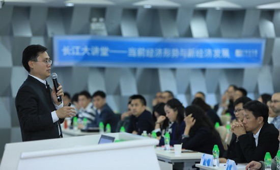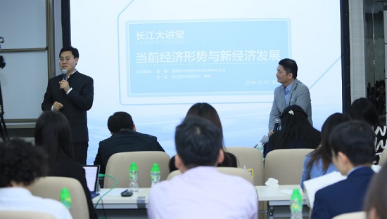 “长江大讲堂——当前经济形势与新经济发展”现场,王一江教授开场致辞