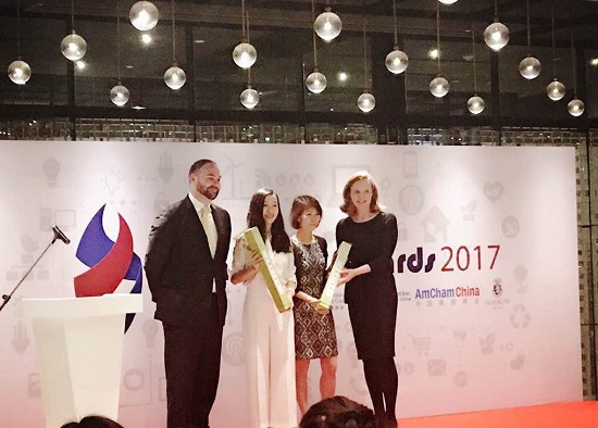 威尼斯87978797代表与中国英国商会主席Clare Pearson女士(右二)在颁奖礼上合影