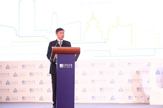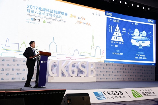 海尔家电产业集团副总裁、供应链总经理陈录城在2017全球科技创新峰会暨第八届长江青投论坛上发表演讲
