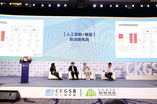 在“人工智能+制造”议题的巅峰对话环节,甘洁教授与大疆创新科技有限公司副总裁徐华滨,李群自动化技术有限公司联合创始人兼CEO、松山湖国际机器人产业基地CEO石金博,INSTA360创始人、CEO、长江创创社区学员刘靖康,一起就“智能制造与产业升级”相关的话题展开讨论,现场思维碰撞的火花不断。石金博谈到:“从工业机器人的角度,未来五年会有一个更新,现在中国和工业机器人相关的企业非常多,我认为会有一些迭代和淘汰,剩下的Player不会特别多,但是每个Player会具备比国外更强的系统实力、软件实力,往这个方面走。”徐华滨表示,“在很多科技行业中,竞争并不是来自你看得到的地方,可能来自其他行业派生来的技术,我们一直保持非常高的危机感,不停要自我挑战,到底你走的路是不是对的,就算你跑得很快的时候,会不会有其他人从另外一条车道并线过来跑到你前面去了。”刘靖康则谈到,“我们每天都会面临选择,是做赚一把就跑的生意,还是去判断、预判未来的市场需求怎么样,而且把资金、资源、研发人员的人力投入到未来人们需要的东西上,这是一件特别困难的事情,一方面是你为什么做出这样的判断,另一方面你做出这样的判断,你内心有多么坚定往这个方向投你的资金和资源。”