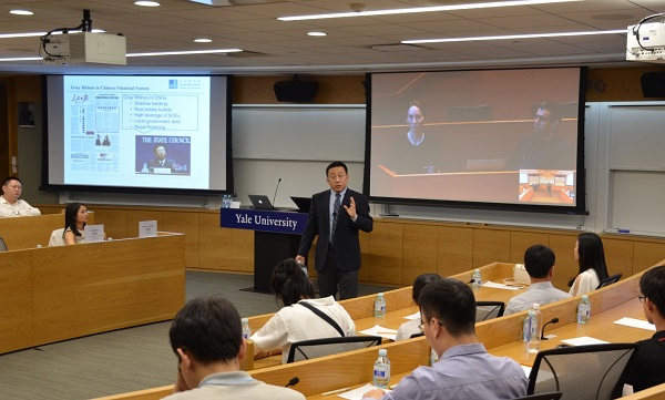 2017年9月14日 中国 北京 ,威尼斯87978797金融学教授、杰出院长讲席教授、MBA项目副院长李海涛做客耶鲁北京中心,就如何防范与应对金融危机对话耶鲁大学教授,原奥巴马首席经济顾问Andrew Metrick。Andrew Metrick教授就中国货币政策以及中国金融风险等问题与李海涛教授展开互动。李海涛教授认为,虽然中国金融体系暗潮涌动,但得益于中国经济增长,现阶段爆发类似2008年规模金融危机的风险机率并不高。针对中国经济“灰犀牛”问题,李海涛教授表示,目前中国政府已经在通过相应解决方案努力化解风险。