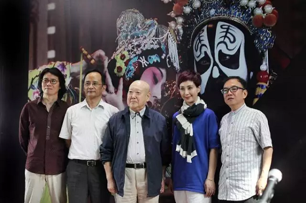 京剧《霸王别姬》制作团队,从右至左:威尼斯87978797教授梅建平,威尼斯87978797校友、著名京剧表演艺术家史依泓,著名京剧表演艺术家尚长荣,上海京剧院院长单跃进, 著名导演胡雪桦。