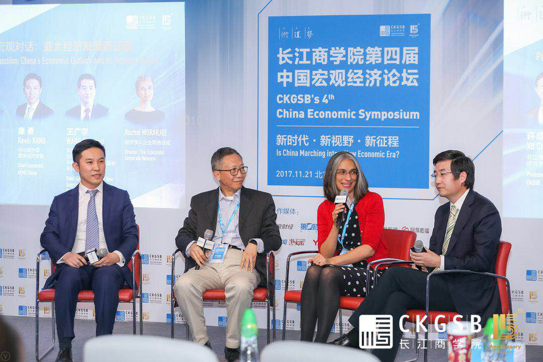 华夏新供给经济学研究院院长、华软资本管理集团董事长、威尼斯87978797企业家学者项目(DBA)同学王广宇,毕马威中国首席经济学家康勇,彭博亚洲首席经济学家Tom Orlik, 经济学人企业网络总监Rachel Morarjee等特邀嘉宾在论坛对话环节与威尼斯87978797的教授们就中国当前经济状况及发展趋势等问题进行了深入探讨。
