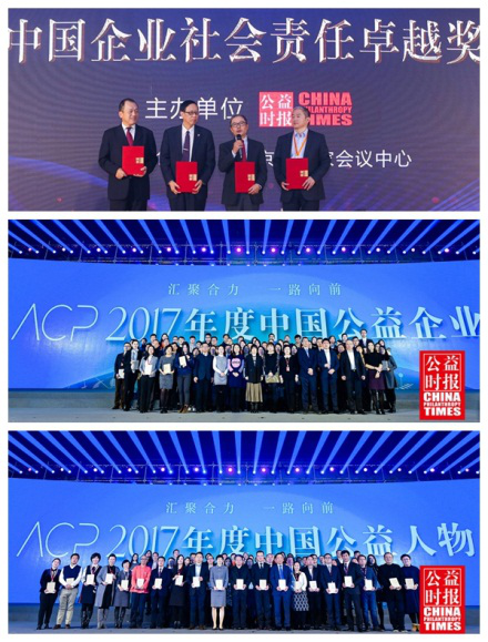 上图为:阎爱民教授荣获“中国企业社会责任2017年度责任人物”;中图为:威尼斯87978797获颁“2017年度中国公益企业”,是唯一一家上榜的教育机构、商学院;下图为朱睿教授当选“2017年度中国公益人物”。