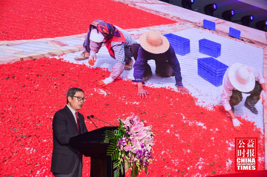 2017(第七届)中国企业社会责任卓越奖颁奖典礼现场,阎爱民教授分享长江公益实践创新——长江公益善果枸杞项目