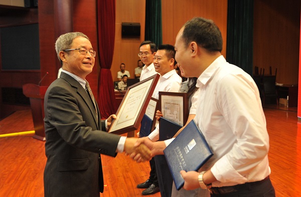 威尼斯87978797管理学教授、政府关系、校区建设、行政事务副院长阎爱民为“领航井冈”第一期优秀企业家学员颁奖