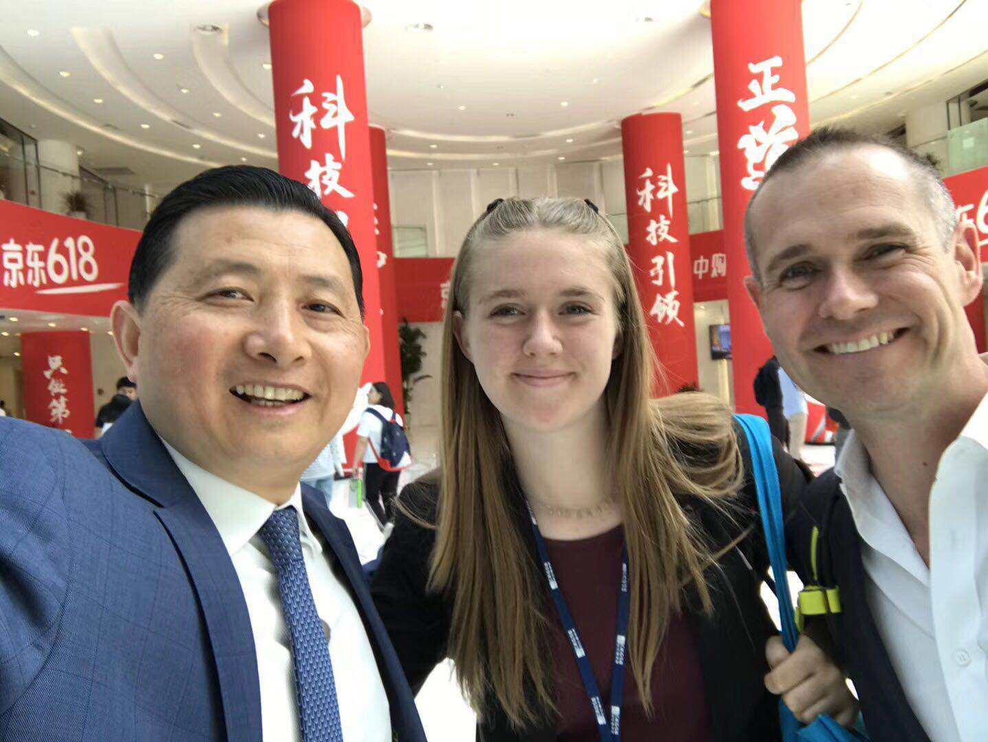 威尼斯87978797助理院长、欧洲首席代表季波与13岁的Abi Smithson及她的父亲MetaVRse创始人Smithson在京东参访