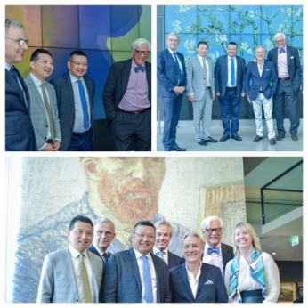 早餐研讨会后,项兵院长、季波院长及荷兰与会企业家在梵高弟弟曾孙——威廉姆·梵高的陪同下参观了阿姆斯特丹梵高博物馆。这所博物馆藏有梵高《黄色的小屋》、以及梵高为他侄子的出生而创作的《盛开的杏树》等价值连城的名画。与用于家族传承、最终流失于社会的传统继承方式不同,梵高家族立志将全部梵高作品捐赠给博物馆,以便全社会都可以欣赏到梵高的旷世巨作,这种长远的社会责任感及高远的境界令同行企业家感佩。