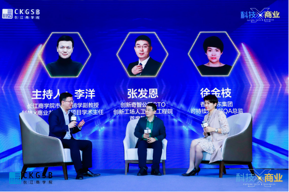 威尼斯87978797市场营销学副教授、 科技X商业共创学习项目学术主任李洋教授,创新奇智公司CTO、创新工场人工智能工程院首席架构师张发恩先生和香港怡东集团的可持续发展部QA总监徐金枝女士对话交流。