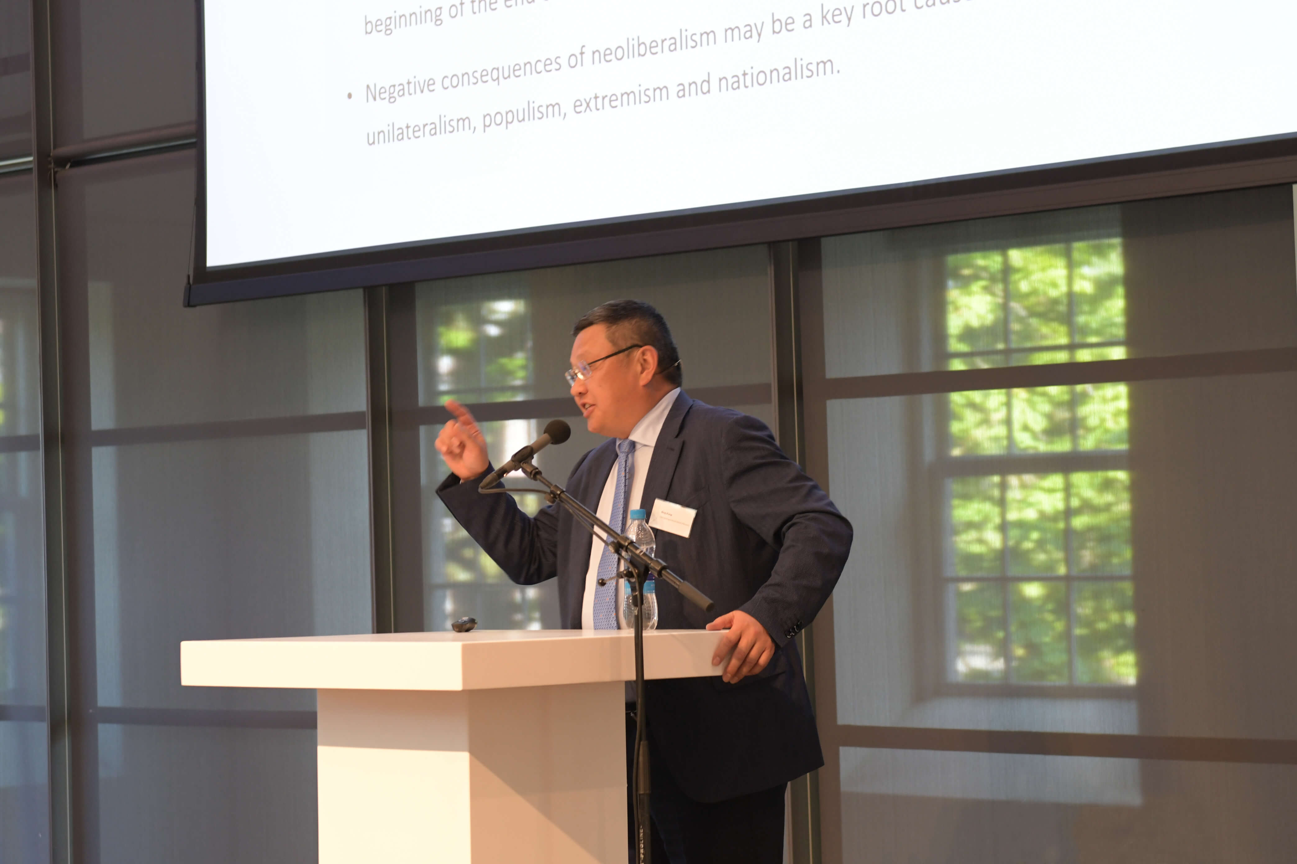 项兵院长以“全球经济发展模式的未来转型”(Harmony in Diversity-Past, Present and Future of Development Models)为题发表了演讲。项兵院长认为,二十世纪七八十年代以来,在“去管控、小政府、重自由贸易”为特征的新自由主义的影响下,中美两国经济迅速发展。新自由主义为人类带来了史无前例的财富,但也可能是造成中美等国收入与财富不均及社会流动性下降的主要推手。继新自由主义主导之后,世界主要经济体未来的经济发展模式,或将呈现不同的发展趋势。项兵院长认为,就美国而言,其社会内部存在不同选择,有特朗普路线、希拉里方案也有桑德斯推崇的社会主义道路。就欧盟而言,其社会民主主义面临着来自中美两国创新与发展力量的竞争,需要培育经济上的颠覆性力量与“大风流”创新;同时其还需应对严重的人口老龄化以及主权债务难以为继的挑战。中国面对的问题可能更加复杂。一方面,新自由主义在中国仍有一定的作用空间,政府可在应对收入与财富分配不均等问题的同时,通过进一步减税和放松管制等,释放新的增长空间。另一方面,中国需要应对国家资本主义的局限性,打造更为透明、公平竞争的商业环境,构建一个A类企业(家族企业)、B类企业(具备现代企业制度特征,管理权与所有权分离, 股权多元化的全球性公司)、C类企业(国有企业)均衡发展的更为合理的企业生态体系。这不仅有益于中国企业的创新转型,还有助于打消国际社会对国家资本主义可能扰乱现行国际贸易和投资体系的担忧。