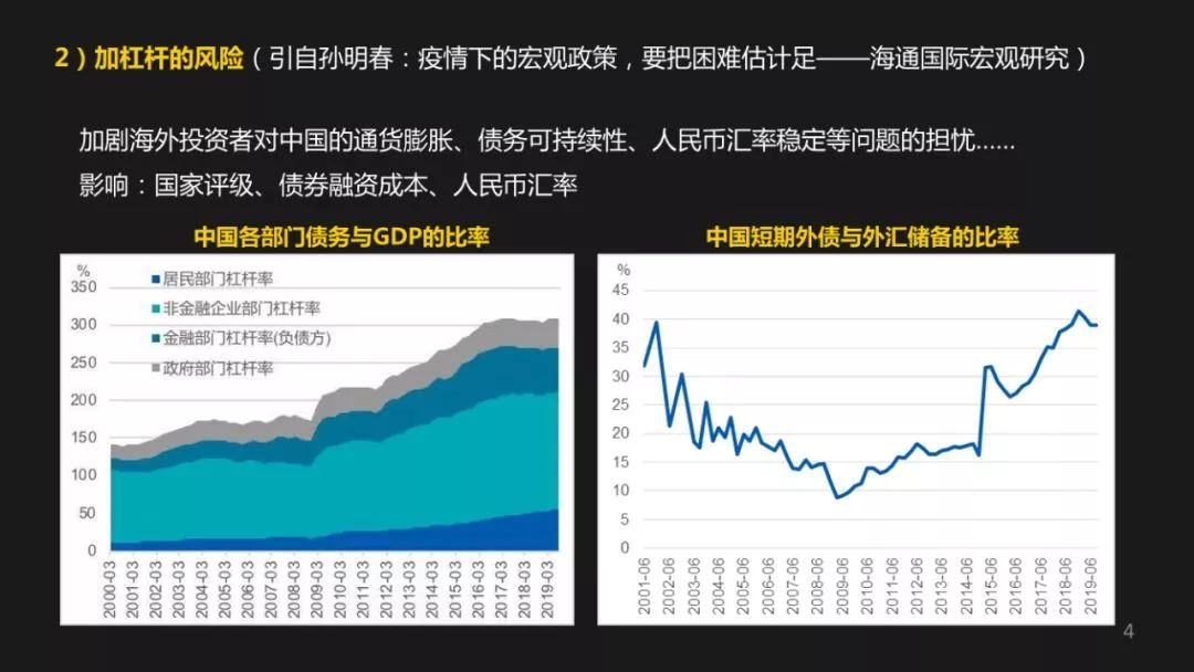 疫情的机会,我这一页PPT里面选用了很多孙明春的观点,前一阵他在海通国际宏观研究方面,有一个文章叫疫情下的宏观政策,要把困难估计足,我认为写得非常好。