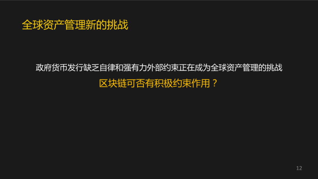 我觉得现在在全球进行投资跟资产管理,最新的挑战不是怎么跑赢CPI的问题,而是你怎么跑赢政府的货币发行速度的问题。因为现在越来越多的政府它缺乏自律,也缺乏强有力的外部约束。