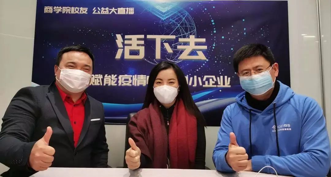 “‘活下去’——赋能疫情中的中小企业”商学院公益直播课程三位发起人,中间为王薇同学
