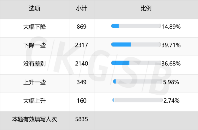 多数受访者认为所在企业将会出现不同程度的经营下滑,实现年前设立的年度业绩目标有难度。