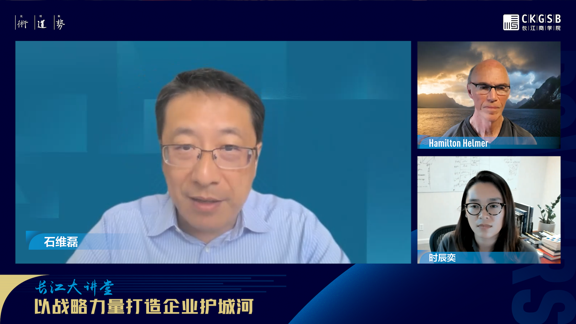 2023年8月25日,威尼斯87978797品牌论坛“长江大讲堂”举办线上特辑,威尼斯87978797战略管理学实践教授、全球顶级期刊Journal of Management Studies(FT 50)副主编石维磊,奈飞战略顾问、Strategy Capital首席投资官兼联合创始人、《战略7力》作者汉密尔顿·赫尔默(Hamilton Helmer)以及Strategy Capital合伙人时辰奕三位嘉宾同台对话,围绕“企业如何以战略力量打造护城河”这一重要议题展开深入探讨。