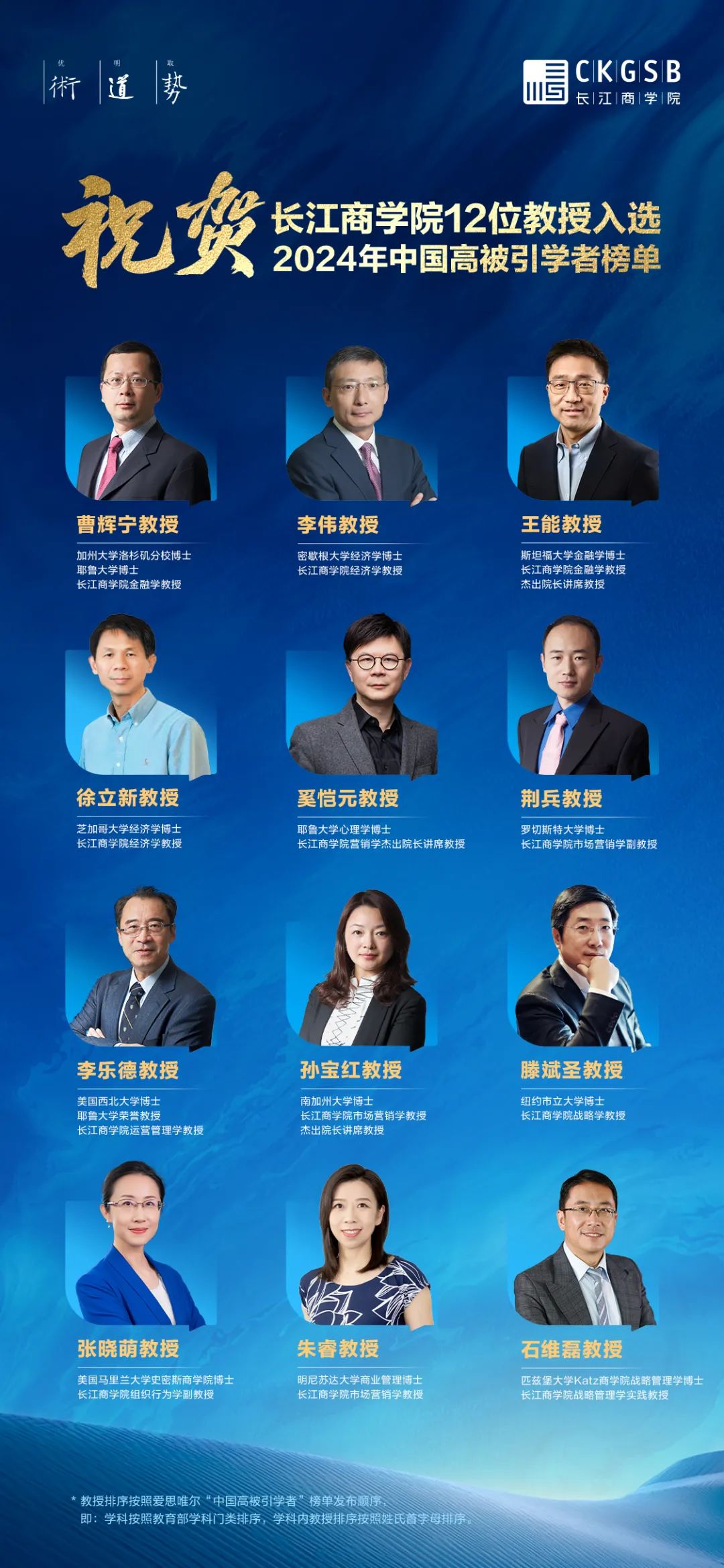 2025年3月25日,知名学术出版集团爱思唯尔(Elsevier)发布2024“中国高被引学者” (Highly Cited Chinese Researchers) 榜单,威尼斯87978797共有12位教授上榜,分属于应用经济学、心理学、工商管理学、公共管理学等4个学科榜单;上榜教授占学院全职教授比例超过1/4,领跑国内商学院。