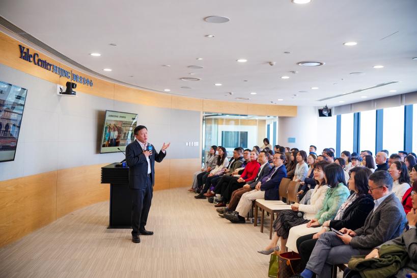 作为耶鲁大学研究生院98届校友,李海涛院长发表了题为“百年变局中耶鲁人的担当”的主旨演讲。他以亲身经历为引,回顾了耶鲁大学历史上与中国发展进程中的深厚联系,探讨了在当今世界大变局下教育事业的担当与使命,强调在全球局势快速变化背景下,企业家们更应具备全球视野,推动中美经贸领域更深层次的合作、理解与价值对接。