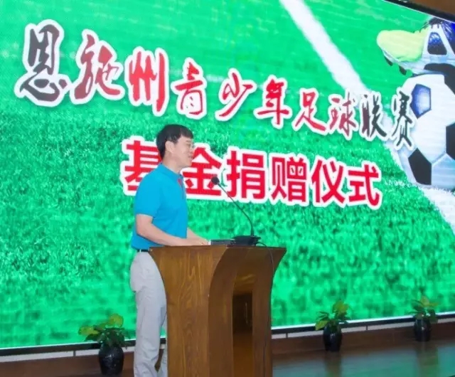大家希望通过同学们捐赠的基金实实在在帮助到恩施州贫困山区青少年足球运动的发展,促进青少年身心的健康成长!长江十九期一班班长张明伦代表发起基金的捐赠单位和同学们发言,表达了大家关心和关注山区青少年健康成长的心声,并代表同学们感谢长江湖北校友会秘书长王国斌及十九期五位湖北同学的全程支持和服务,更感谢王海涛书记及其团队辛勤耕耘的恩施州成就了大家的爱!