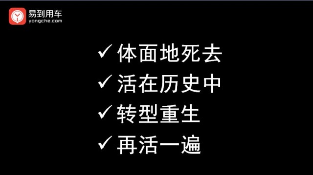 经常有人跟我分析说我要投资一个事或者要干一个事说这个业务有什么什么问题和局限,我跟他说,我说互联网的东西最后长成的样子一定不是你现在看到的样子,你现在的评判和现在的业务怎么样其实毫无根据,它会变得非常的厉害。你评价一个刚出生的孩子长的好看还是不好看有意义吗?未来他长成的样子可能是完全不能想象的。所以从这点来说,大家现在看到的易到就是冰山表面的一层,我们做的各种各样的努力和尝试90%大家还没有看到。大家也不用太在意说当前的现状是怎样的。你与其判断业务的现状不如看一下团队本身的能力和价值观以及他们世界未来的想法。