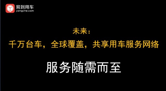 我简单说一下易到,易到成立4年在全国20多个城市开展服务。目前大概整个易到从最开始到现在有300倍的成长。大家现在看到的易到更多的还是提供高端的用车服务,但我想跟大家分享的是未来的易到有两个新的战略目的地,第一是我们希望能够接入更多的车,在我们的眼里马路上跑的车都应该以某种合理的方式接入到这样一个大的汽车共享网络里。然后我们未来构成一个全球覆盖千万台车的一个共享用车的服务网络,这是我们的下一个战略目的。第二,我们想创造一种新的形态我称之为随需而至的移动服务。总的来说,易到其实正在做一件小概率成功的事件,我们要成功的概率是很小的,但是要做成了又是一个巨大的市场。我不太屑于做不牛逼的事,要不然我就要做一个很牛逼的事不成功也无所谓,我不太想得过且过的东西。