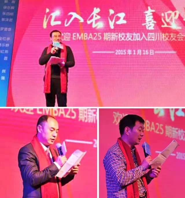 「四川校友会会常务副会长余红兵先生致辞;马建强与张彦强两位校友分别做了2014工作总结和2015年工作计划」