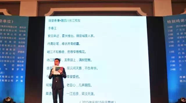 「22期4班班长李春江《锦堂春慢•赠四川长江校友》 (主持人刘磊代读)」