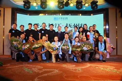 最后,主持人邀请在场的所有抚州籍、在抚州工作、投资的校友上台,共同欢迎各位学院领导、老师以及校友们的到来!同时,总裁班首期胡连荣校友代表抚州校友发言。