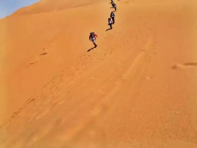 由于膝盖扭伤,整个左腿已经不能弯曲,这使得我不仅不能跑了,甚至连快走都变成了奢望。拖着笔直的左腿,我一步一步向前蹭着。在没受伤前,沙漠中最大的敌人只有高耸的沙丘,然而现在,平坦的沙地也变成了难缠的沼泽,过慢的行走速度使我深陷其中,难以前行。