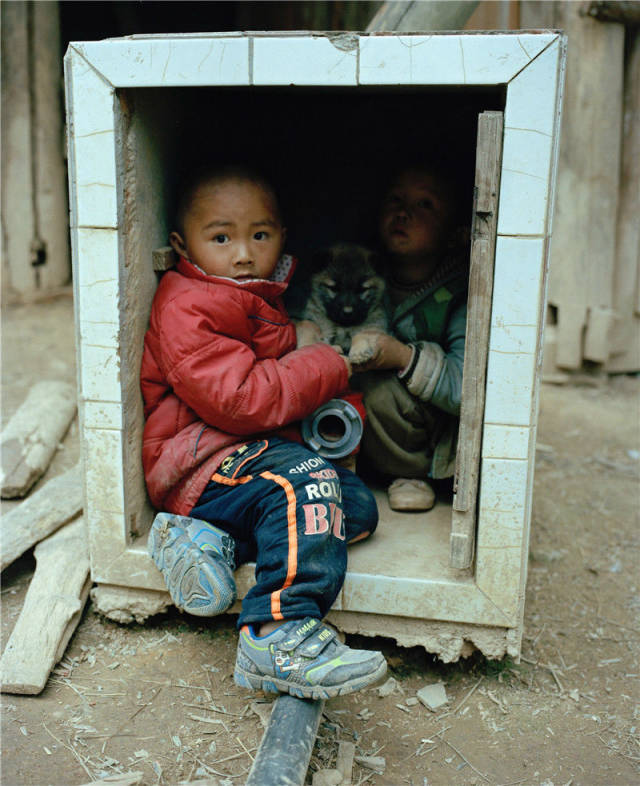 他们往里钻去抱狗的时候,我端好相机,等着这幅画面。(摄于:贵州 2014年 2月 )