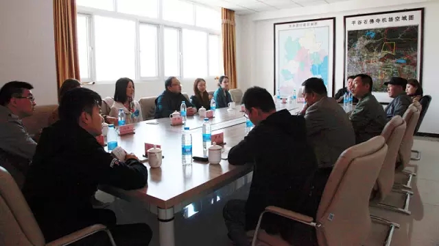 2016年4月8下午,长江校友集体乘坐大巴抵达位于平谷区马坊石佛寺机场的北京华安通航总部,受到了华安通航高层领导的热情欢迎。