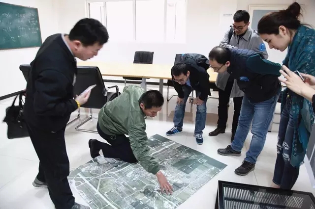 [董事长康建生向校友们讲解美国芝加哥通航卫星图]