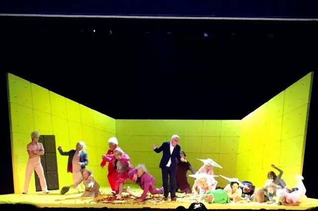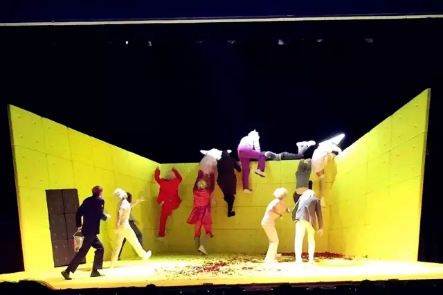 开幕大戏《物理学家》由苏黎世国家剧院制作演出。该剧荒诞怪异,扑朔迷离,讲述的是天才物理学家担心自己的发明被政客利用去毁灭人类,只好装疯躲进疯人院。导演弗里茨有着奇特、先锋甚至是反地球的舞台语汇。他运用奇幻鲜亮的荧光色三面墙装置舞台,演员表演偏向于肢体语言的表达,他们的造型、表演的奇异化和荒诞性令人称赞。