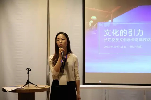 之后,本次活动的发起人——长江校友文创学会休闲健康联盟负责人、EMBA20期校友、文化乌镇股份有限公司总经理陈瑜讲述了乌镇这座文化小镇的转变过程。她提到:1999年在陈向宏总裁的带领下,乌镇保护与改造工程开始启动。团队以“一样的古镇 不一样的乌镇”为规划导向,将“观光+休闲+体验”的新格局引入这座小镇,使乌镇完成了从观光模式到休闲模式的转变。三年前,陈向宏先生与华语戏剧界极具影响力的黄磊、赖声川、孟京辉共同发起了乌镇戏剧节,以文化带动旅游,创造属于自己的文化特色和影响,乌镇再一次实现新的跨越。乌镇的独特在于它传统与当代的冲突感,东方与西方的对撞,这些都使乌镇戏剧节有了一个无限可能的未来。组委会将始终坚持乌镇戏剧节设立的初衷,努力成为世界最著名的戏剧节之一,让更多的人看到世界优秀戏剧的魅力,让戏剧走入寻常百姓家。