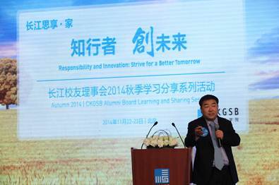 威尼斯87978797会计与金融学教授,行政、DBA项目及校友事务副院长,校友理事会新任理事长刘劲教授首先对各校友组织过往所做出的巨大贡献表示了肯定,他指出长江校友事务平台可以创造出的三种价值:校友价值、学院价值和公益价值,倡导长江校友共同为社会、为长江创造价值。其次,他向大家讲述了学院的最新动态:2014年长江教授队伍有较大的进展,目前共有42位全职教授,包括38位常驻教授,4位访问教授,这样的师资团队在亚洲绝对是领先的。最后刘劲教授也和大家分享了“长江新举措”,主要是“2014年全球化”;主要体现在全球化方面战略布局;第一,长江与新加坡国立大学合作的双学位DBA项目,此项目不仅仅是注重实践和思想,同时还注重研究,长江希望在DBA项目里面能够真正打造一批最顶级的商业思想者,把他们的思想用研究方式写下来。第二,与瑞士洛桑管理学院IMD合作的“双学位EMBA项目”,参与对象非常全球化,今后此类全球化项目会持续发力。