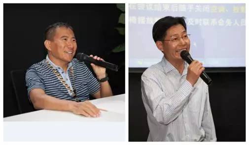[左:德邦物流董事长崔维星校友发言右:上海校友会执行会长徐国宝校友发言]