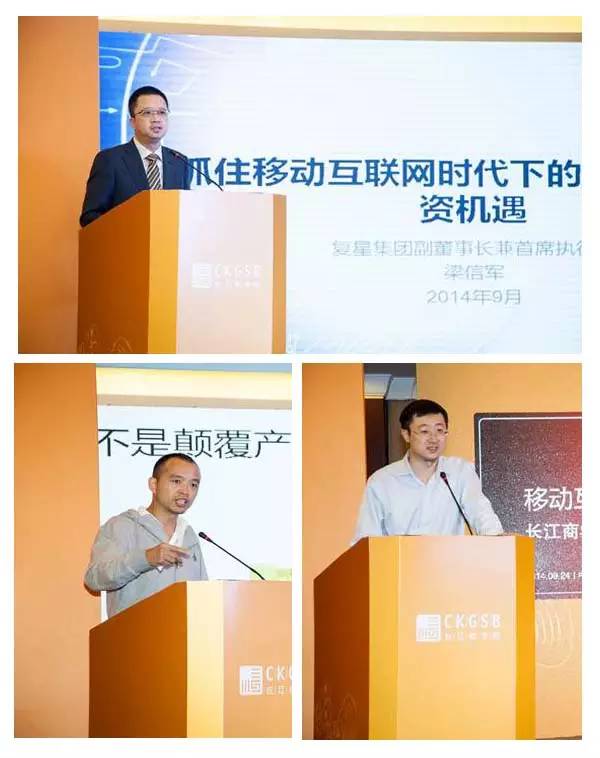 新生感言中,各项目的新生代表分享了自己的长江印象:EMBA24期上海班葛航认为来到长江,第一感受到这是一个学习的平台,每月一次的课程学习是非常紧张的,同时每位同学都特别希望拿到冠军。第二健康运动锻是同学们永恒的话题。第三长江积极回馈社会,倡导公益。第四长江是一个交流的平台,在此平台上,同学们看到了自己的不足,也学到了很多新的东西,学会了反省自己的人生,也积攒力量发展更强的事业。FMBA2014级黄新平谈到金融MBA项目的学习压力,即在短短的这些时间,同学们见证了很多严格要求的教授,为大家安排严密的课程学习,同学们也参加了无数个有价值的代表最前沿的信息技术的分享和交流,即便这几个月的时间也已经体会到了长江带给大家的与众不同。来自EE课程总裁9期班的同学黄福成感受到“长江是一个包容的长江;长江的文化是分享的文化”,所有的同学和教授都是亲切和包容的。来自EE课程文创4期的新生李响感谢长江,历经两个月的学习与同学间建立了良性互动包括我们线上做了很多的活动;感谢长江提供学习交流分享的平台。