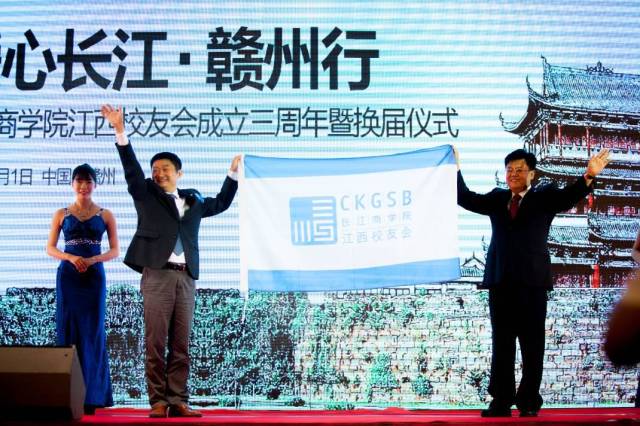 新任会长、EMBA13期校友李清从上届会长张学军手中光荣地接过了江西校友会会旗。在之后的致辞中,他代表新任服务团队,对参加仪式会议的学院代表、老师、兄弟校友会校友的到来和支持表示感谢,对支持江西校友会成立三周年暨换届仪式的赣州校友龚斌、邓书甄、邹承慧、肖明、林业霖和何涛等校友表示感谢,对践行长江爱心,支持公益捐赠的邹承慧校友及其企业(爱康集团)表示感谢。他表示,新一届服务团队将继续做好各项校友服务工作,身体力行做好公益活动,为江西经济建设不遗余力添砖加瓦,相信新一届校友会一定不负重望,用更加真诚和细致的服务做好校友会的工作,打造好江西校友平台。