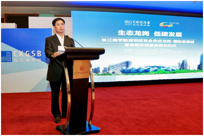 EMBA5期校友、复星集团公司副董事长、首席执行官梁信军代表长江校友理事会学习研修委员会以《中国世纪是靠拼来的、不是等来的——从低碳城实验看PPP模式的蜂巢城市(社区)实践》为主题,结合PPP模式,畅谈龙岗国际低碳城的建设。他强调,龙岗在新型城镇化建设过程中,要适应中国纺锤型城镇的改变。以健康蜂巢为例,龙岗要建设健康产业园,完全可以拷贝深圳组团式发展,首先功能要鲜明。其次,要有产业配套的服务业。最后,为创新企业留足空间。